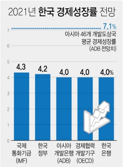 대신 내년 미국의 성장률 전망치는 4.9%에서 5.2%로 0.3%포인트 상향 조정됐다. 독일과 일본도 각각 지난 7월 전망 대비 0.4%포인트, 0.2%포인트 높아졌다. 올해 회복이 다소 부진하더라도 내년에 빠르게 반등할 것으로 예상한 것이다.