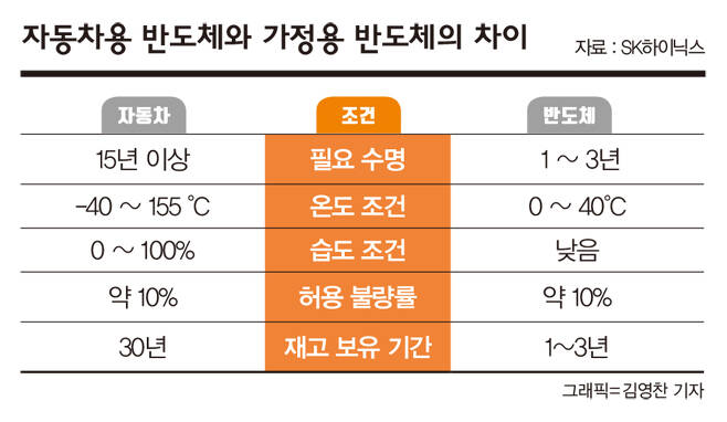 원래 자동차와 반도체의 생산 방식은 무척 다르다. 자동차 메이커는 필요한 만큼 보통 부품을 공급받아 생산하는데 재고 부담을 줄이고 생산 유연성을 확보하기 위해서다. 그러나 반도체는 나노미터(nm⋅10억분의 1m) 단위의 회로에 전자가 움직이는 것으로 이런 반도체를 만들기 위해서는 초고정밀도의 기기를 사용하는 800여 개의 공정을 거치야 하며 만드는 데도 수개월이 소요된다. 따라서, 반도체는 가능하면 동일한 것을 계속 만드는 것이 유리하다. 일례로 애플은 대만의 파운드리(반도체 위탁생산) 업체인 TSMC에 1년씩 장기 계약을 한다.
