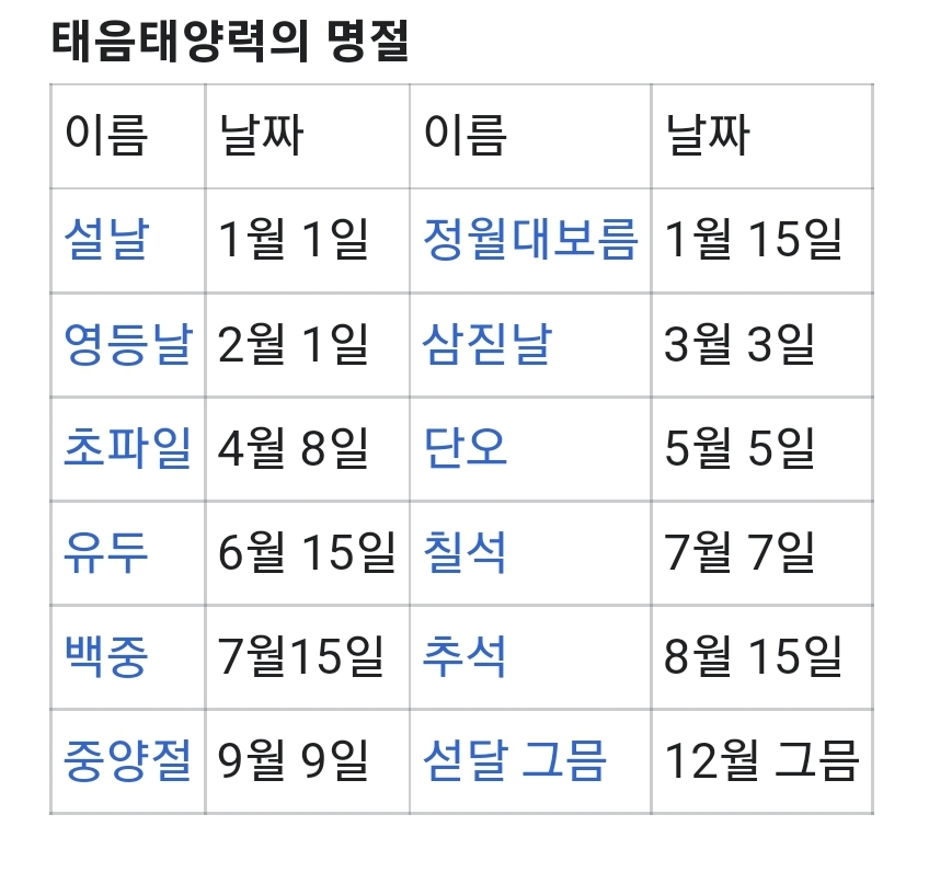 ★음력명칭: 정월, 이월, 삼월, 사월, 오월, 유월, 칠월, 팔월, 구월, 시월, 동짓달, 섣달