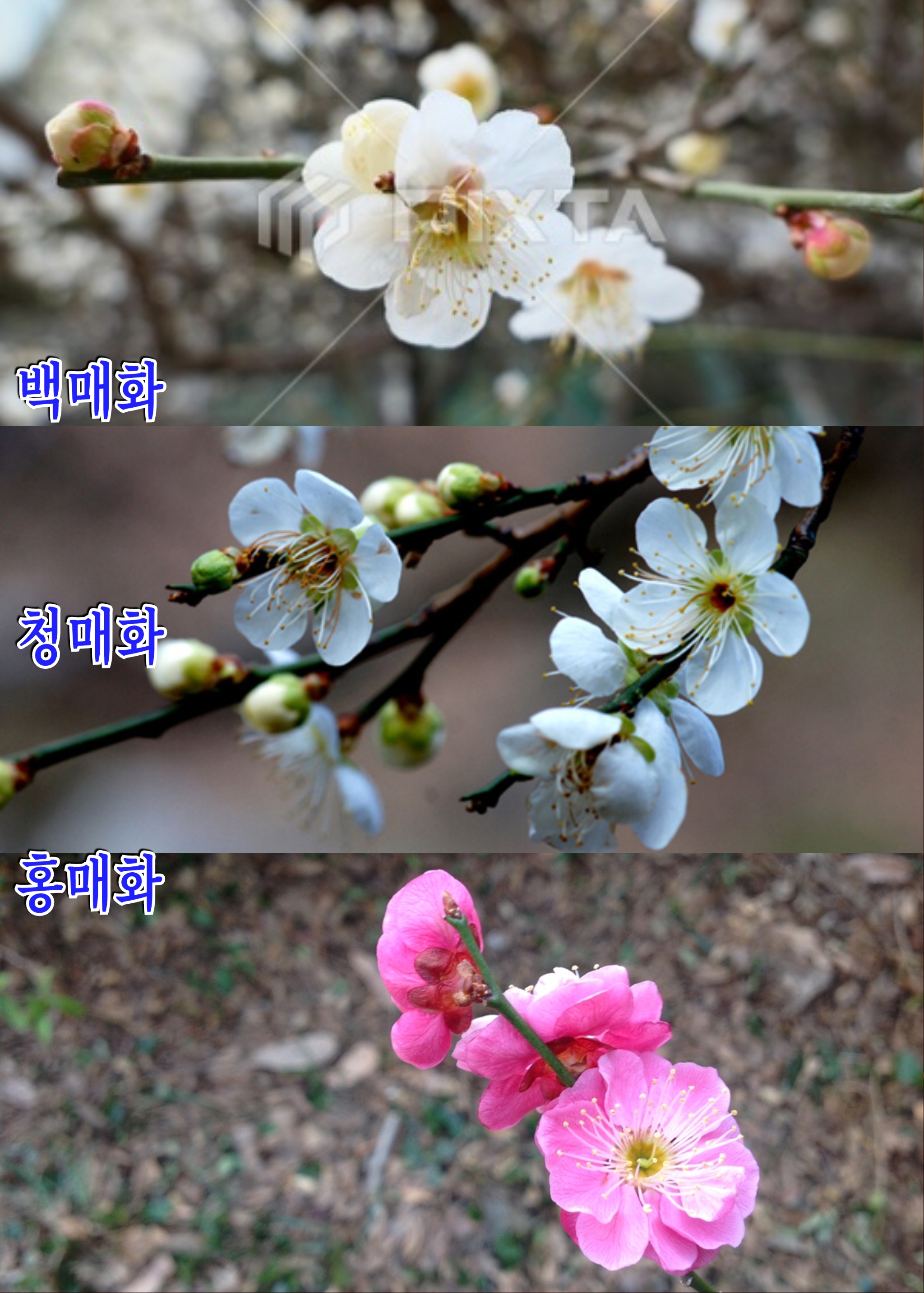 매화의 꽃말은 ‘고결한 마음, 기품, 결백, 인내’이다.