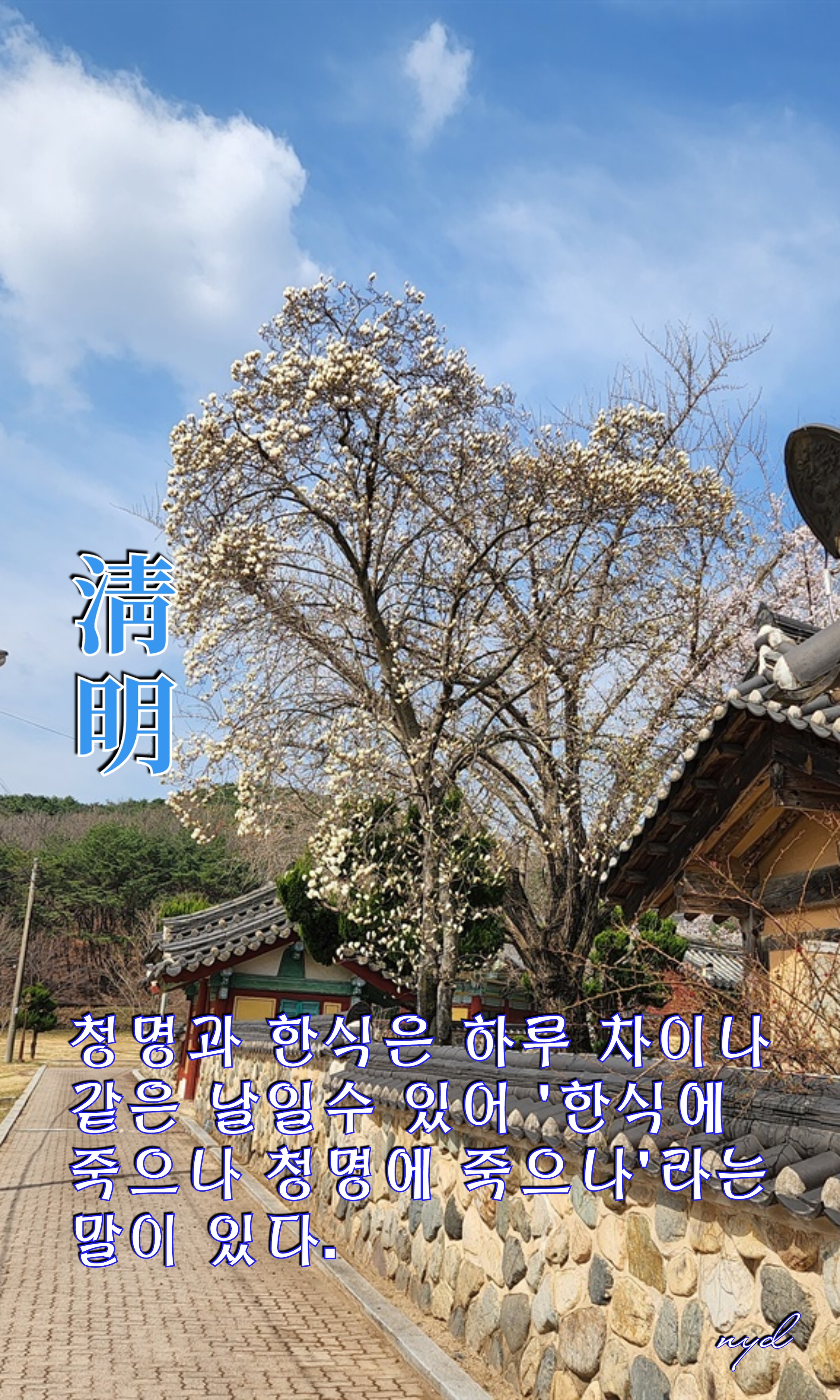 청명이란 말 그대로 날씨가 좋은 날이고, 날씨가 좋아야 봄에 막 시작하는 농사일이나 고기잡이 같은 생업활동을 하기에도 수월하다. 청명 무렵은 화창한 날씨 속에서 땅에서는 제비꽃이 무더기로 피어나고 잎도 나지 않은 나뭇가지에서는 여러 나무꽃들이 거의 동시에 피어나 세상을 더 화창하게 만든다.