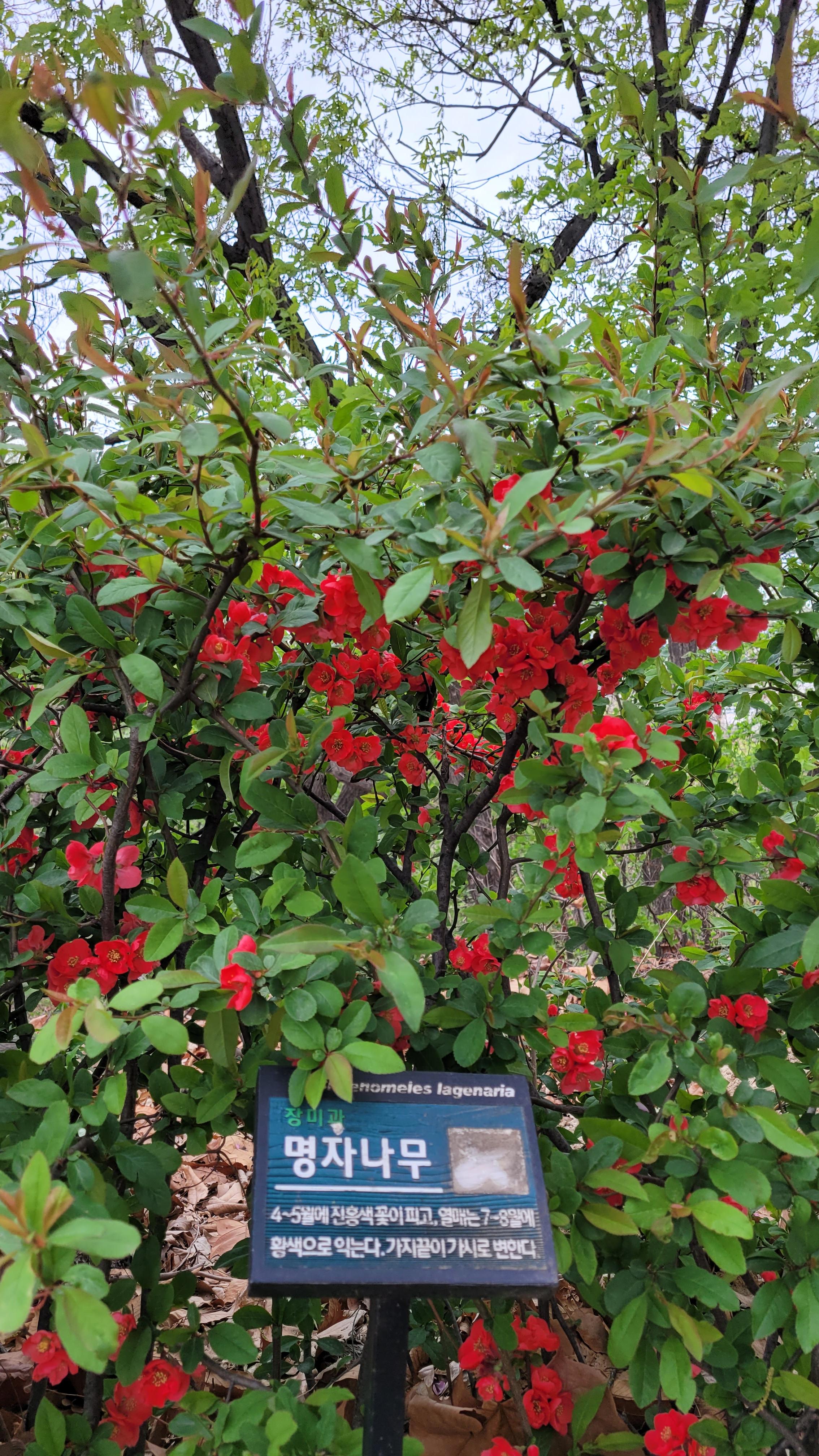 봄꽃 중에서 잎이 먼저 핀 다음에 피는 꽃으로는 명자나무가 맨 먼저다. 매화, 생강나무, 산수유, 진달래 등도 꽃이 일찍 피긴 하지만, 이 꽃들은 잎보다 꽃이 먼저 핀다. 명자나무는 봄에 피는 꽃 중 가장 붉은 꽃임에도 불구하고 그 모습이 화려하지 않고 청순해 ‘아가씨나무’라고 하는 것이며 진초록 잎 뒤로 붉은 꽃잎을 살짝 내민 모습은 이미 성숙했기에 몸을 숨긴다는 말이다. 그러기에 명자나무를 집안에 심으면 과년한 딸이 바람난다고 한다.