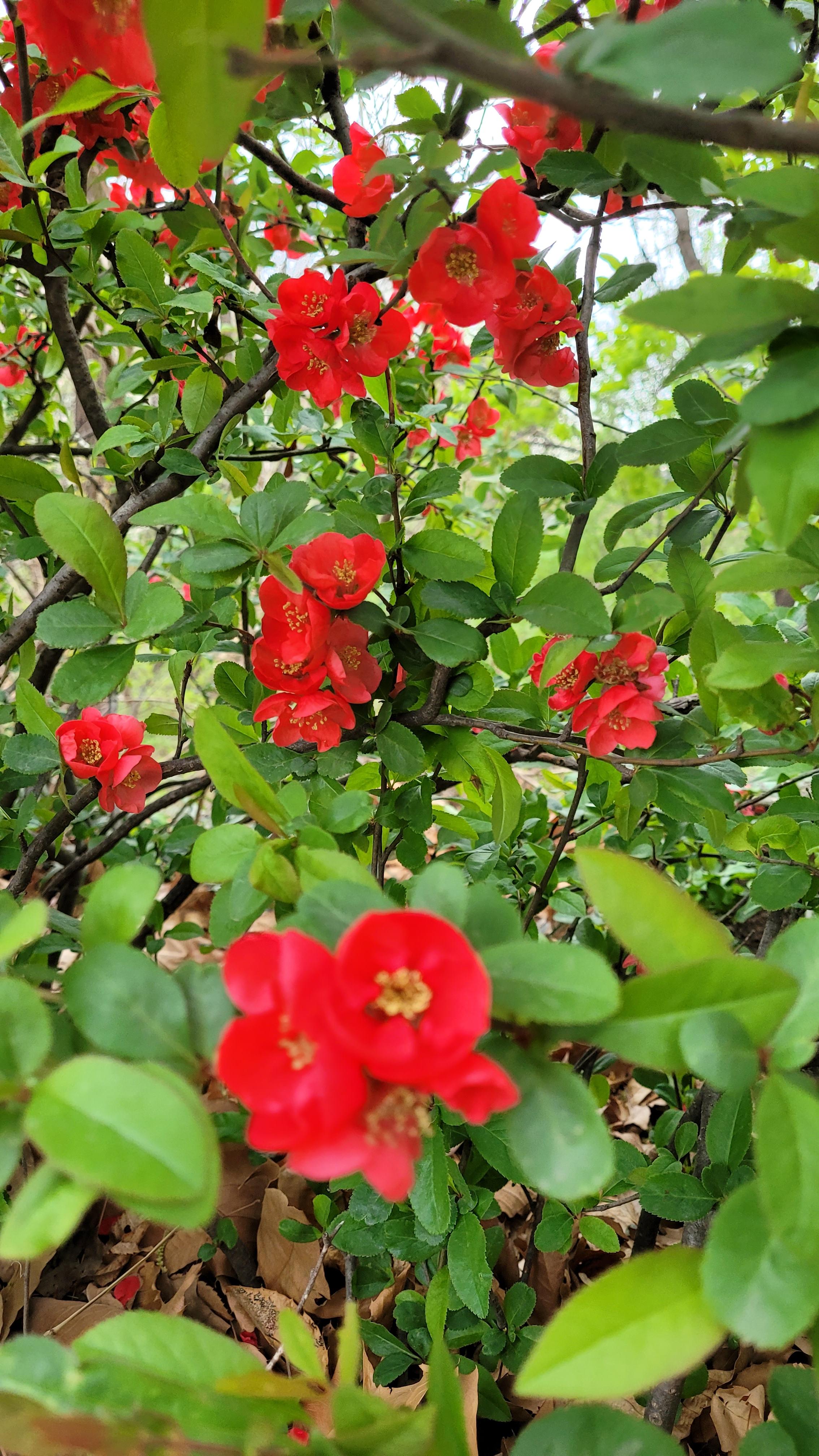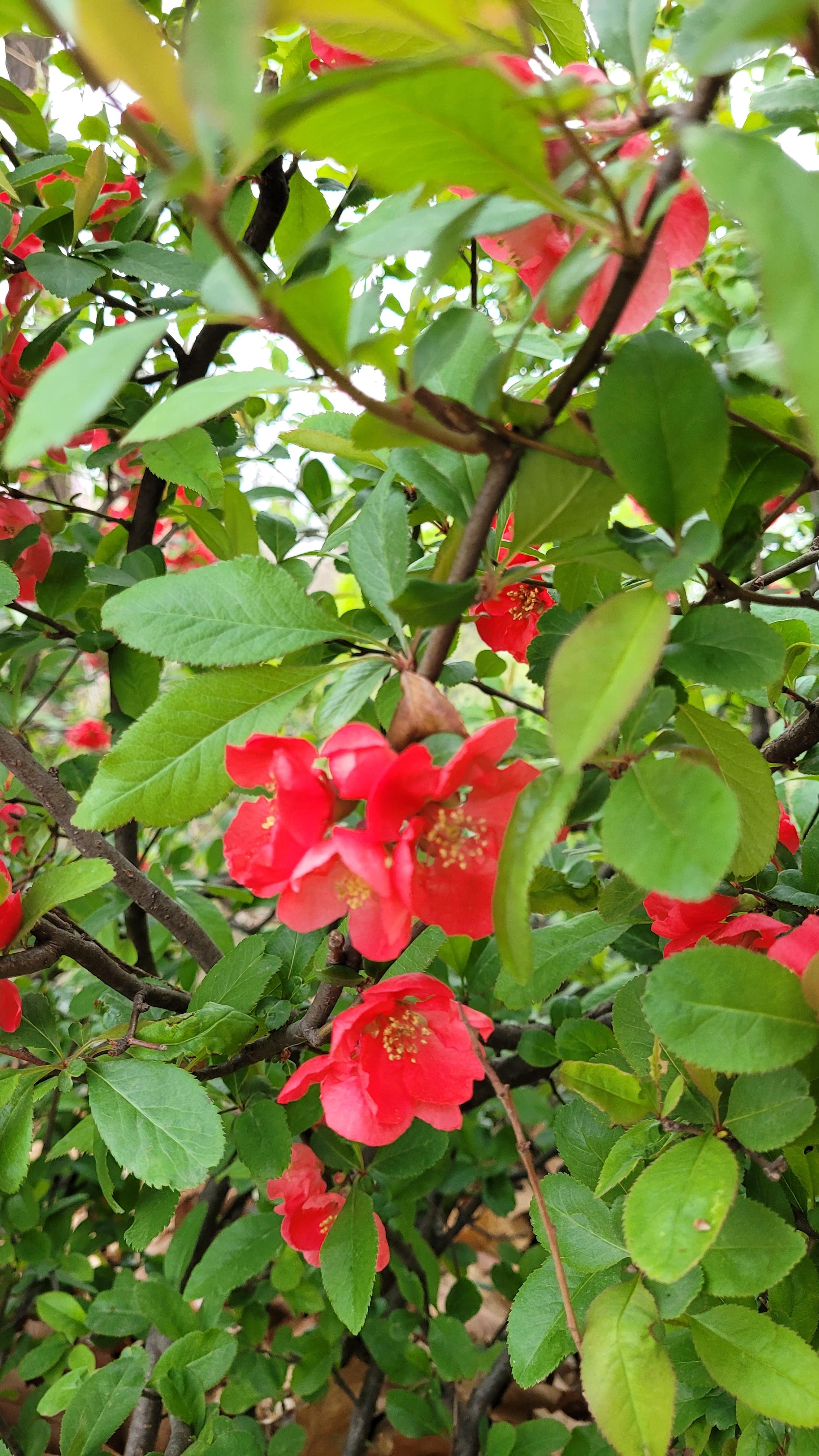 명자나무는 잎 뒤에 숨어서 피는 꽃이다. 꽃이 왜 안 필까 해서 살펴보면 언제 그렇게 피었는지 잎에 가려진 붉은 꽃잎들이 가득하다. 그렇다고 완전히 숨은 것도 아니다. 마치 누군가 봐주길 기다린 것처럼 보일듯 말듯 사람 마음을 간질인다.