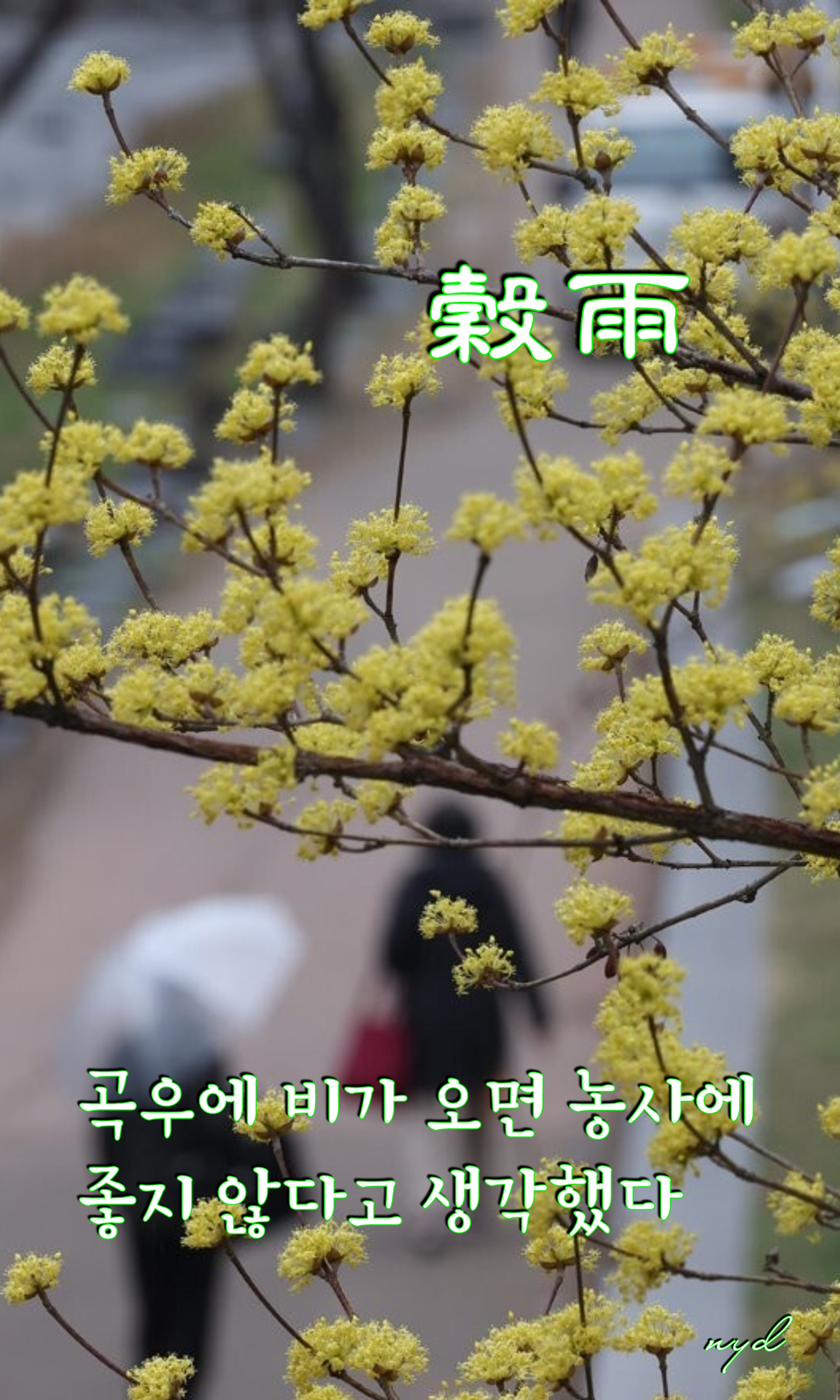 새싹과 새순이 돋아나는 봄철 영농기를 맞이하여 농촌에선 못자리를 하기 위하여 볍씨를 담그는등 농사시기를 본격적으로 알리는 절기이자 봄비가 내려서 곡식이 윤택해 진다는 뜻도 있다. 밭에 많이 심는 콩과 식물 자운영이 곡우 무렵부터 나비 모양의 붉은색 꽃을 둥글게 모여 피운다.