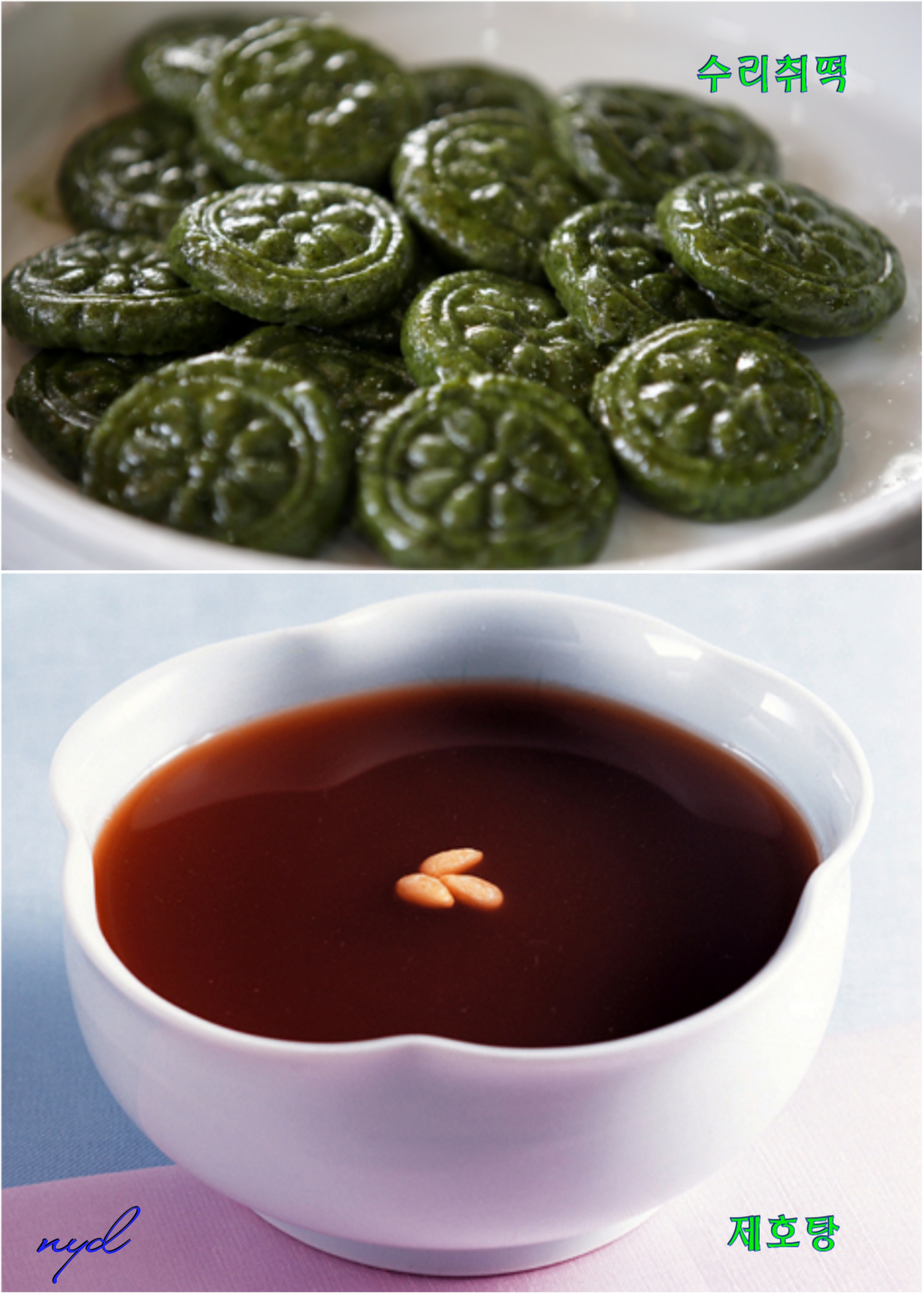또한, 임금은 애호를 신하들에게 하사하기도 하였는데, 애호는 쑥이나 짚으로 호랑이모양을 만들어서 비단조각으로 꽃을 묶어 갈대이삭처럼 나풀거리게 하고, 쑥잎을 붙여 머리에 꽂도록 한 것이다. 이 또한 벽사에서 기인한 것이다. 제호탕(醍醐湯)이란 오매육(烏梅肉), 사인(砂仁), 백단향(白檀香), 초과(草果) 등을 곱게 가루 내어 꿀에 재워 끓였다가 냉수에 타서 마시는 청량음료를 말한다.